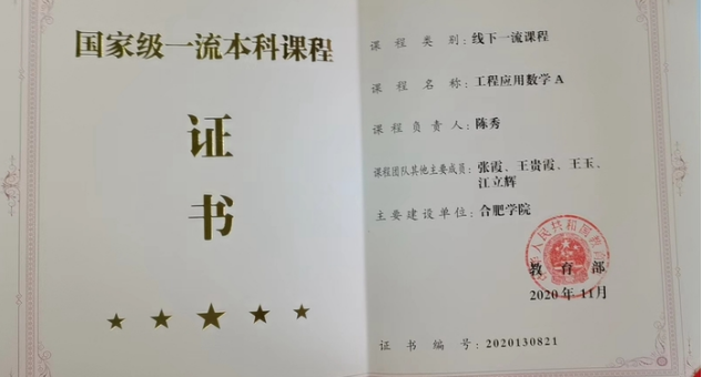 Launched in 2021 by the Online Education Research Center of China’s Ministry of Education, the “Project Gold” is a nationwide plan to develop more excellent courses and lectures. Upon strict evaluation, Applied Engineering Mathematics A, together with the other 96 courses, was selected from over ten thousand state-level or provincial-level excellent undergraduate courses, into the first batch of the project, which is a great fruit of the HFU math teaching team for their 15-year reform.